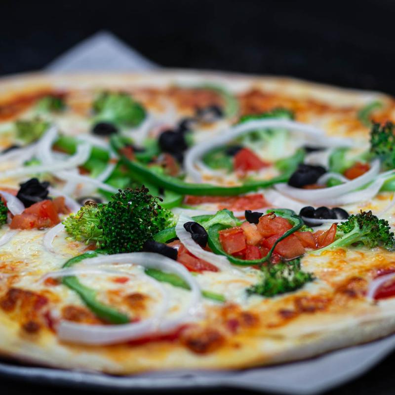 Caramelized Onions | Roma Tomatoes | Roasted Red Bell Peppers | Fresh Green Peppers | Red Onion | Pineapple • Unless noted, all pizzas start with red sauce and 5 cheese blend